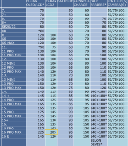 Qualités d’écrans disponibles : Original (sur demande), Oled , incell